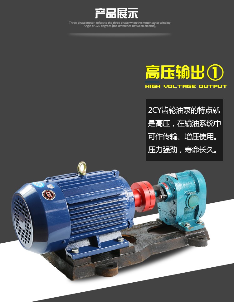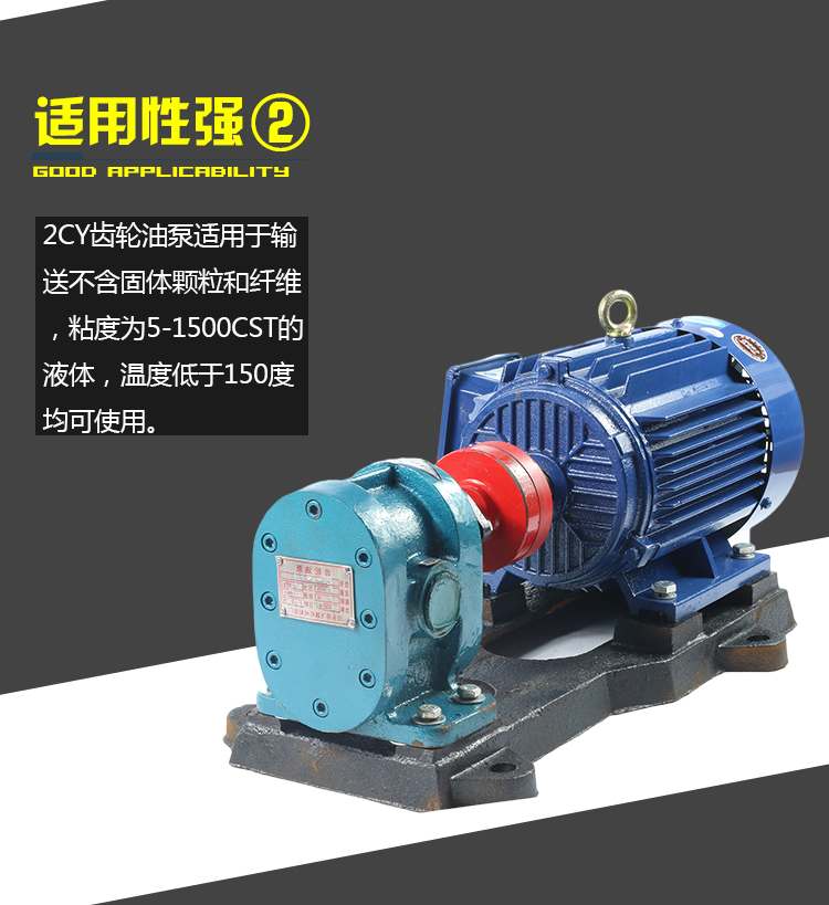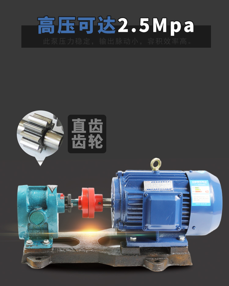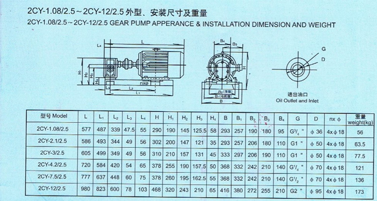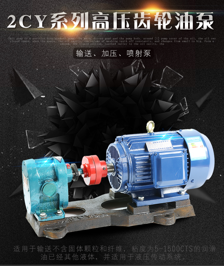 2CY系列是容積式泵,主、被動(dòng)齒輪與泵體、左右泵蓋組成進(jìn)油、出油二個(gè)封閉空間,當(dāng)齒輪轉(zhuǎn)動(dòng)時(shí),進(jìn)油腔的容積,由于嚙合齒不斷脫開,而由小變大。形成真空,將液體吸入,有齒谷帶往油腔,而出油腔容積,由于嚙合齒的不斷進(jìn)入嚙合而大變小,油液受壓縮而被排出,從而達(dá)到輸送油料的目的。